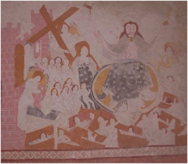 Un véritable petit bijou aux couleurs chatoyantes, elle était au Moyen Âge la chapelle du cimetière. Construite au 15ème siècle à l’initiative du curé de la paroisse, elle est ornée de peintures murales de la fin du 15ème siècle, probablement commanditées par le seigneur de la Contour, Jean de Moussy, également seigneur de Bois-Morand à Antigny. Elles évoquent notamment une scène très en vogue à la fin du Moyen Âge, la « Rencontre des trois morts et des trois vifs » qui occupe près de 20% de sa surface peinte et qui rappelle la fragilité de la vie terrestre et l’espoir de la résurrection. Cet ensemble est à rapprocher des peintures de la chapelle située dans l’église d’Antigny.