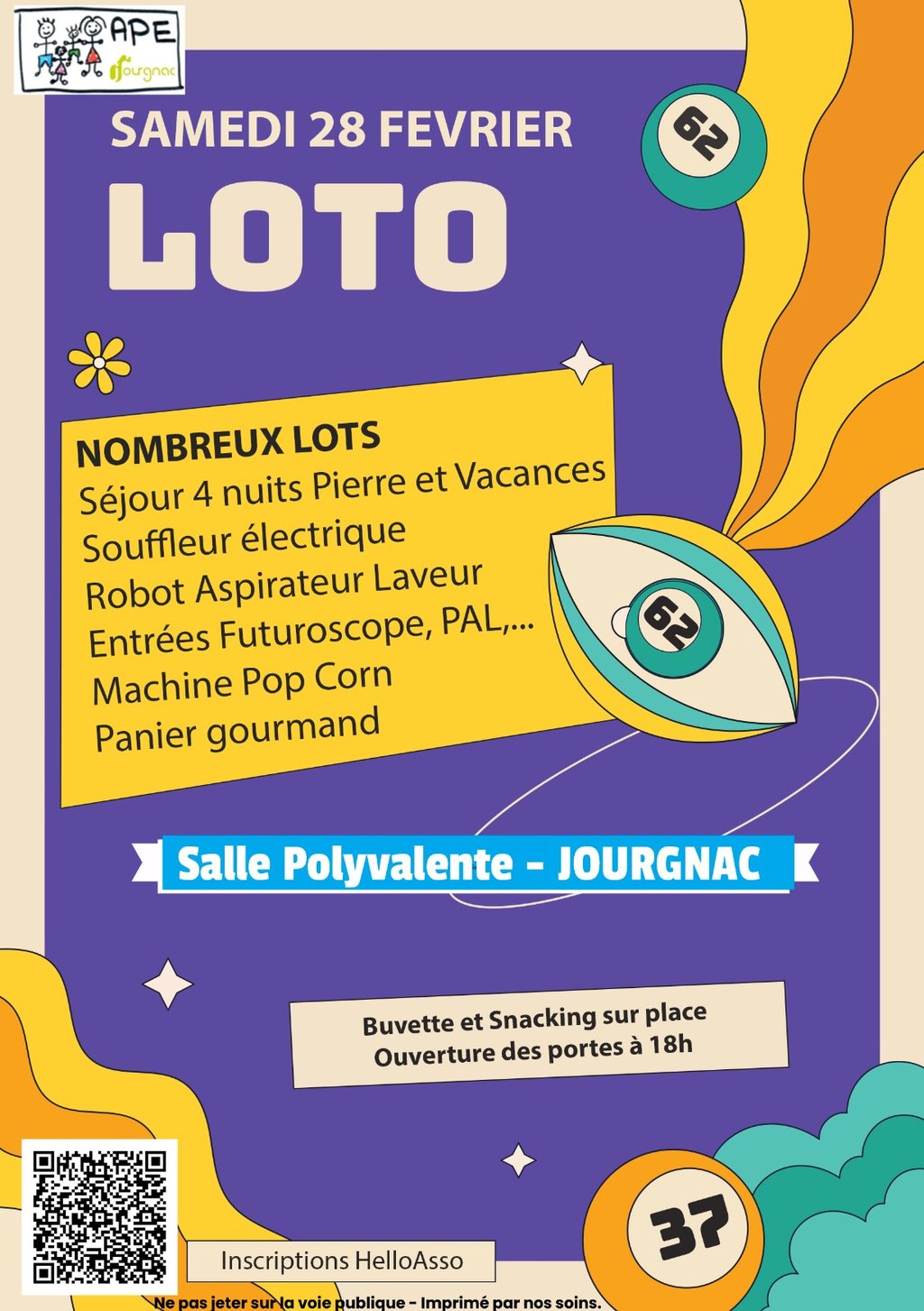 L'APE de JOURGNAC organise son Loto des écoles le 28/02/2026.