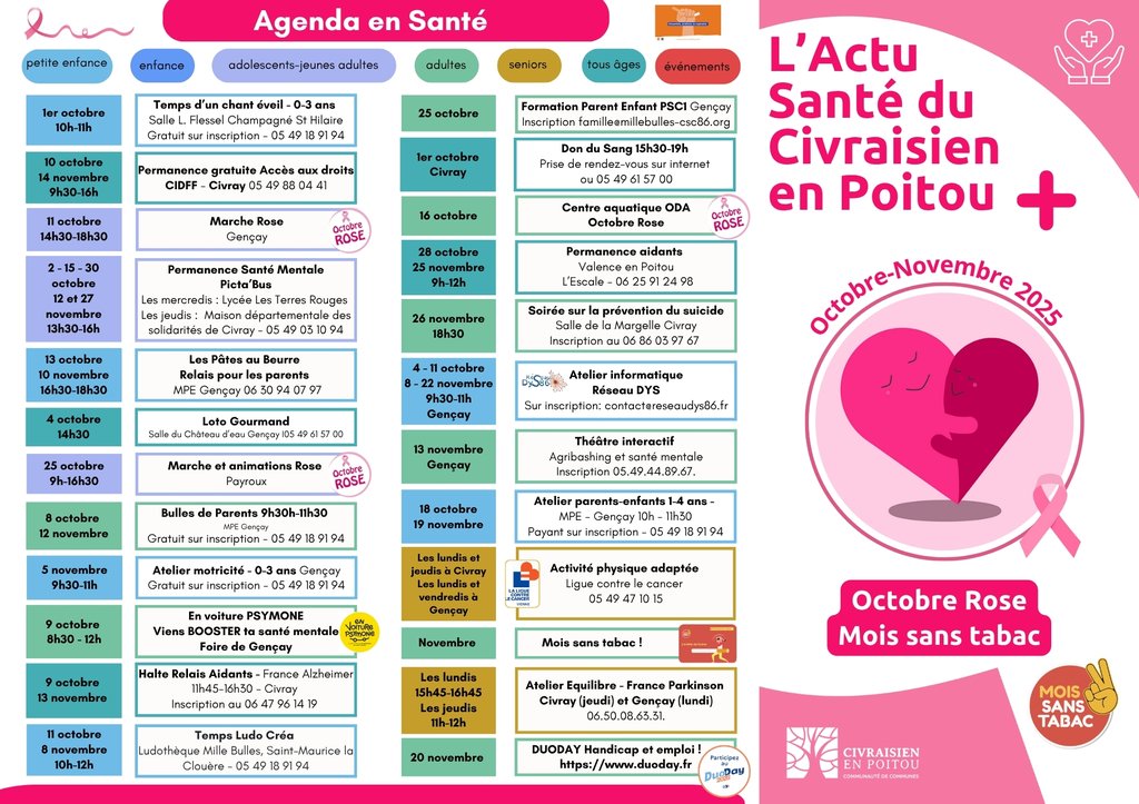 Ce numéro est dédié à Octobre Rose et au mois sans tabac, vous retrouverez également le calendrier des actions en santé sur le territoire pour les deux mois à venir !