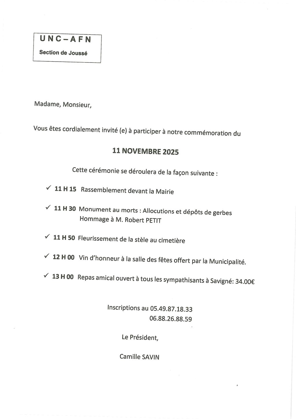 Publié le lundi 03 novembre 2025 - UNC JOUSSÉ - ANCIENS COMBATTANTS