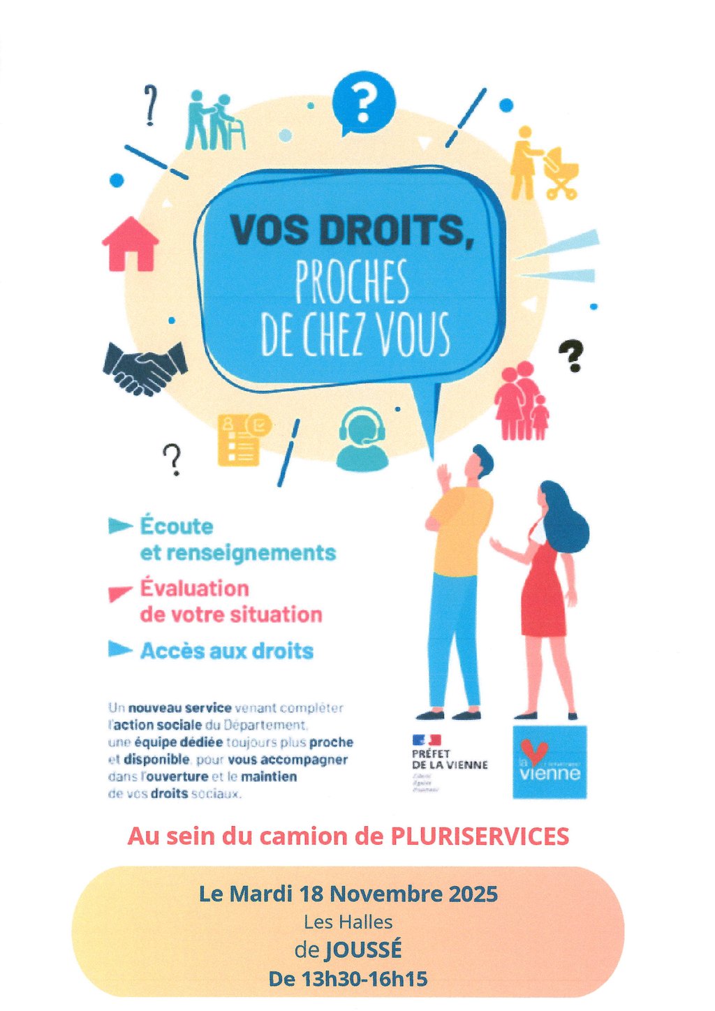 UN NOUVEAU SERVICE VENANT COMPLÉTER L'ACTION SOCIALE DU DÉPARTEMENT, UNE ÉQUIPE DÉDIÉE TOUJOURS PLUS PROCHE ET DISPONIBLE POUR VOUS ACCOMPAGNER DANS L'OUVERTURE ET LE MAINTIEN DE VOS DROITS SOCIAUX
