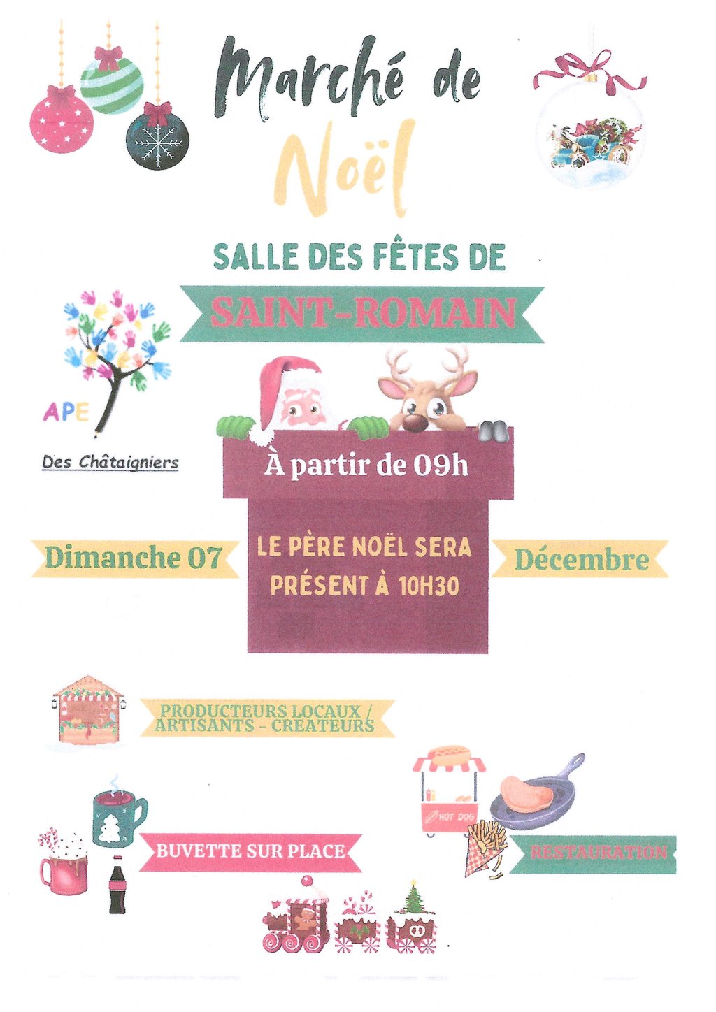 L'APE LES CHÂTAIGNIERS VOUS INVITE AU MARCHÉ DE NOËL LE 7 DÉCEMBRE 2025 À LA SALLE DES FÊTES DE SAINT ROMAIN