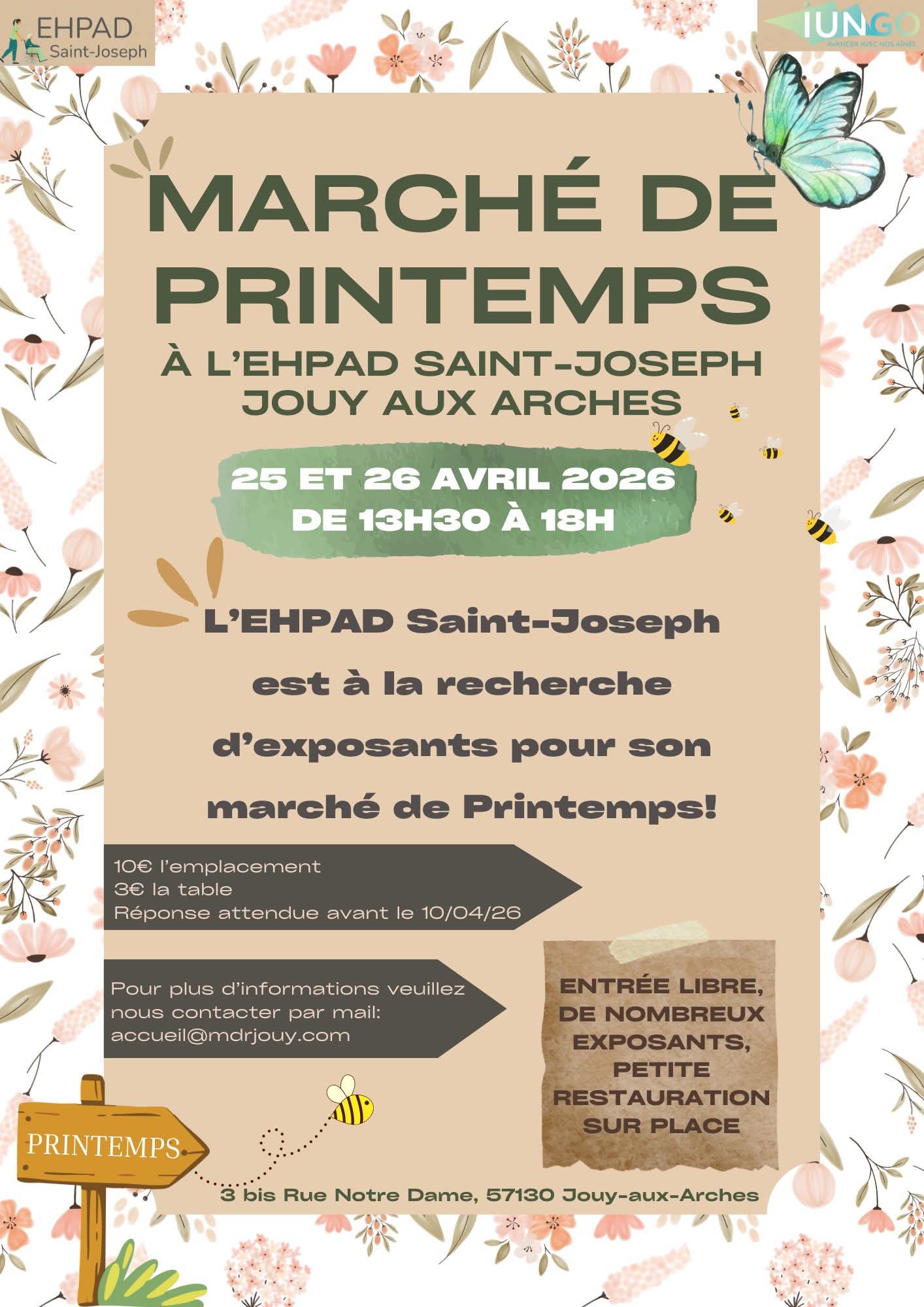 MARCHÉ DE PRINTEMPS - EHPED SAINT JOSEPH - RECHERCHE D'EXPOSANTS
