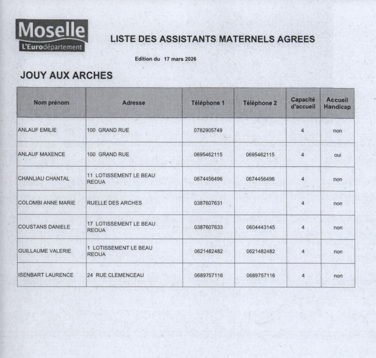 NOURRICES AGRÉÉES PAR LE DÉPARTEMENT - JOUY-AUX-ARCHES