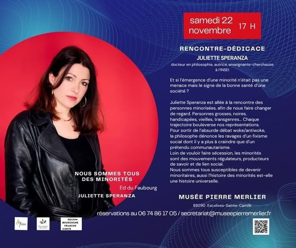 Le samedi 22 novembre à 17H, Juliette Speranza viendra présenter son nouveau livre : "Nous sommes tous des minorités", paru en octobre aux éditions du Faubourg.