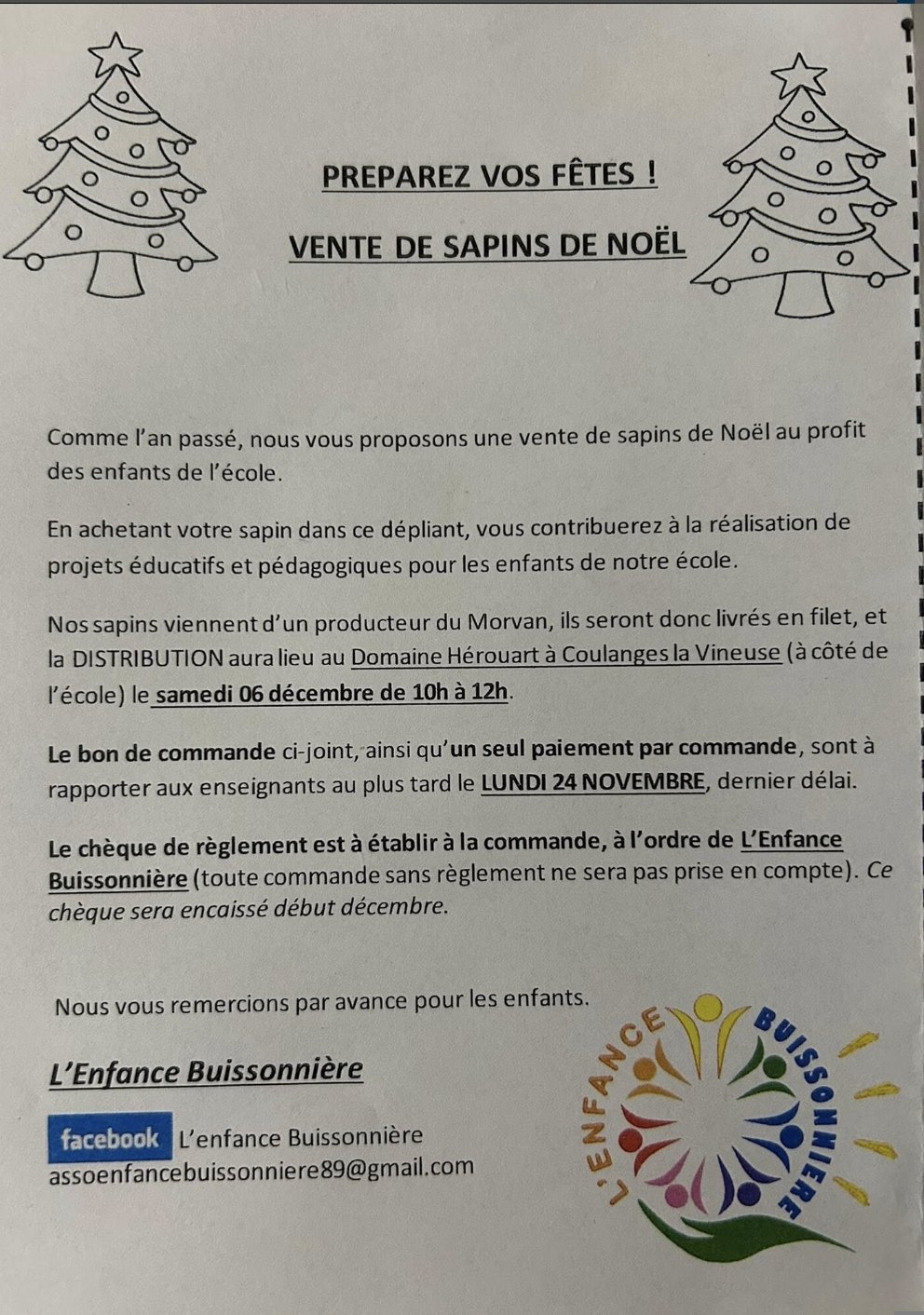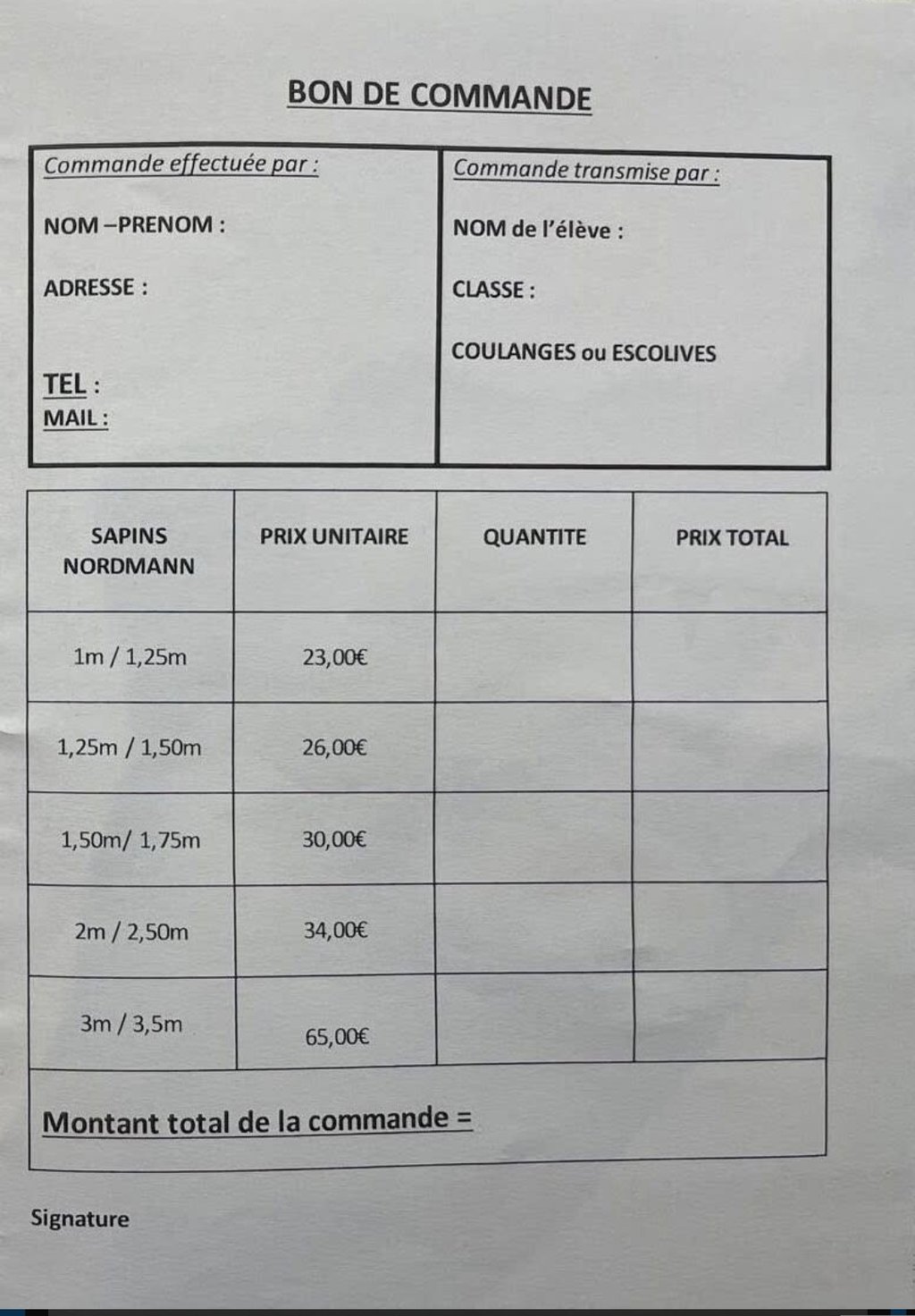 - Déposer le bon de commande accompagné du règlement dans la boîte aux lettres de l’école d’Escolives-Sainte-Camille ou de Coulanges-la-Vineuse