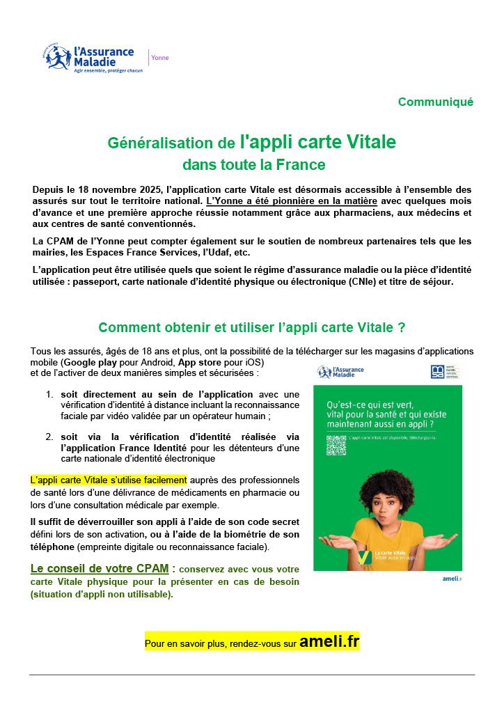 - Les professionnels de santé icaunais sont de plus en plus nombreux à être équipés pour accepter l’appli carte Vitale (ApCV) ;