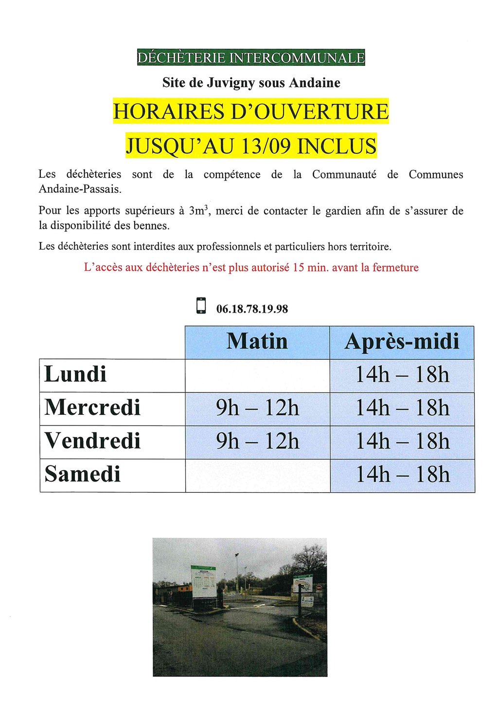 HORAIRES D'OUVERTURE DE LA DECHETERIE DE JUVIGNY SOUS ANDAINE
