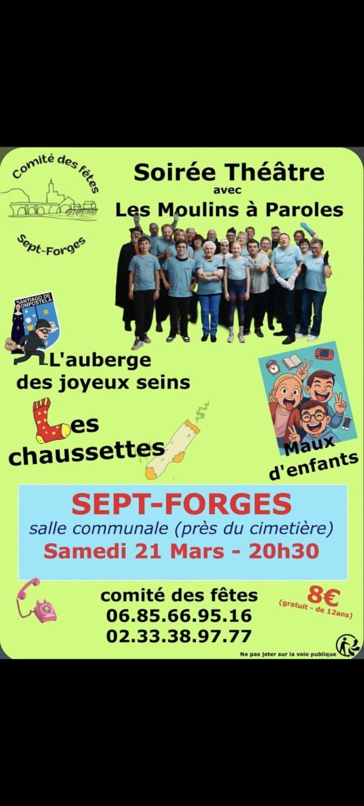 Soirée théâtre avec les Moulins à Paroles à la salle communale de Sept Forges 20h30