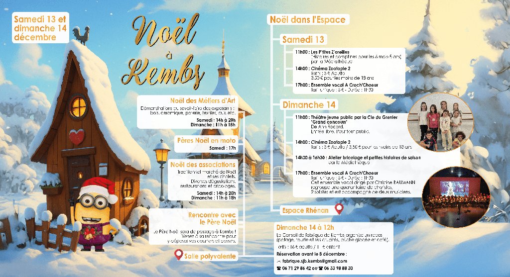 Durant le week-end du samedi 13 et dimanche 14 décembre 2025, les festivités de fin d’année laissent place à Noël à Kembs.