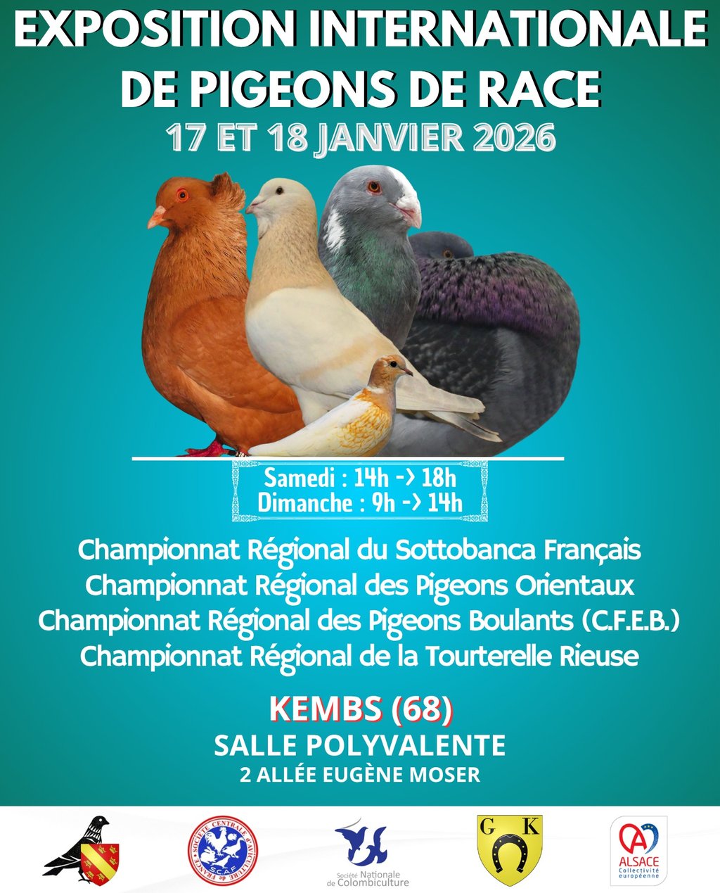 Documents d'inscription et informations supplémentaires disponibles sur : https://pigeonclub68.jimdofree.com/prochaine-exposition/
