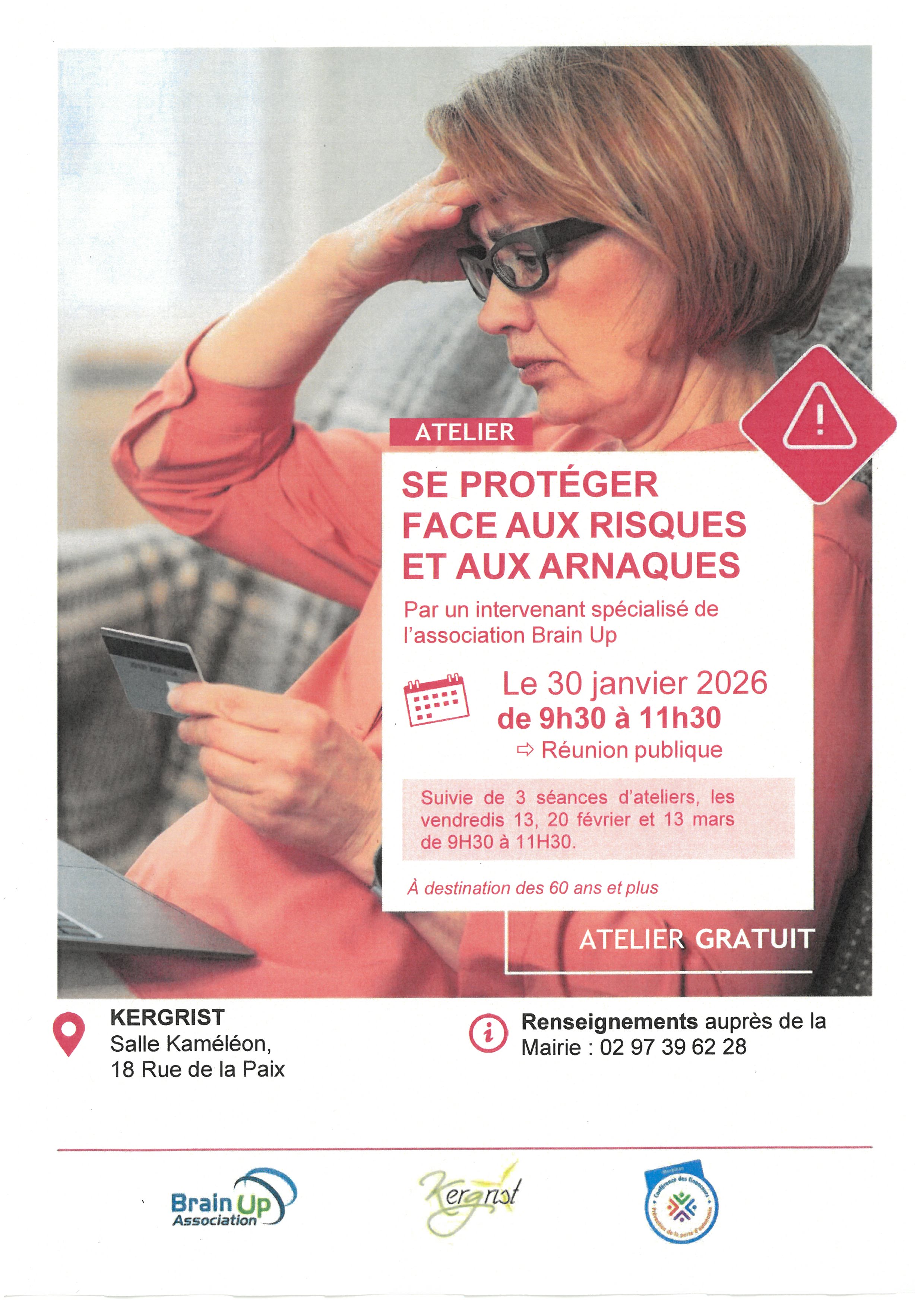 Réunion 30 janvier 2026 à la mairie suivie des inscriptions à l'atelier Se protéger face aux risques et aux arnaques.