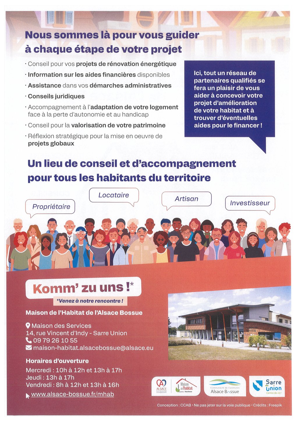 Le numéro de téléphone et l’adresse mail de la Maison de l’Habitat restent les mêmes : 09 79 26 10 55 – maison-habitat.alsacebossue@alsace.eu