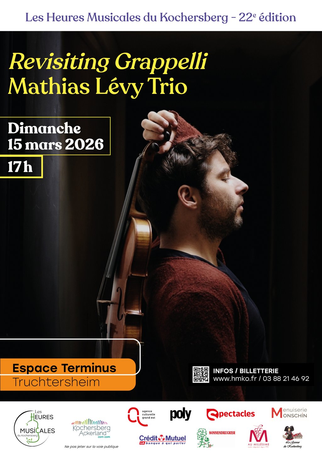 15 mars : Mathias Lévy Trio " Revisiting Grapelli". Hommage à Stéphane Grapelli, un des maîtres incontestés du violon jazz
