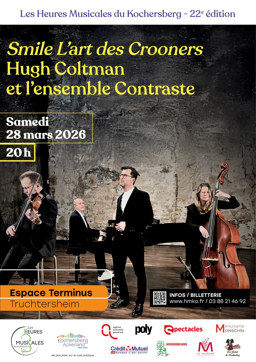 28 mars : "Smile" l'art des crooners - Huhg Coltman et l'ensemble Contraste. Hugh Coltman explore l'héritage vibrant des crooners, de Sinatra à Nina Simone