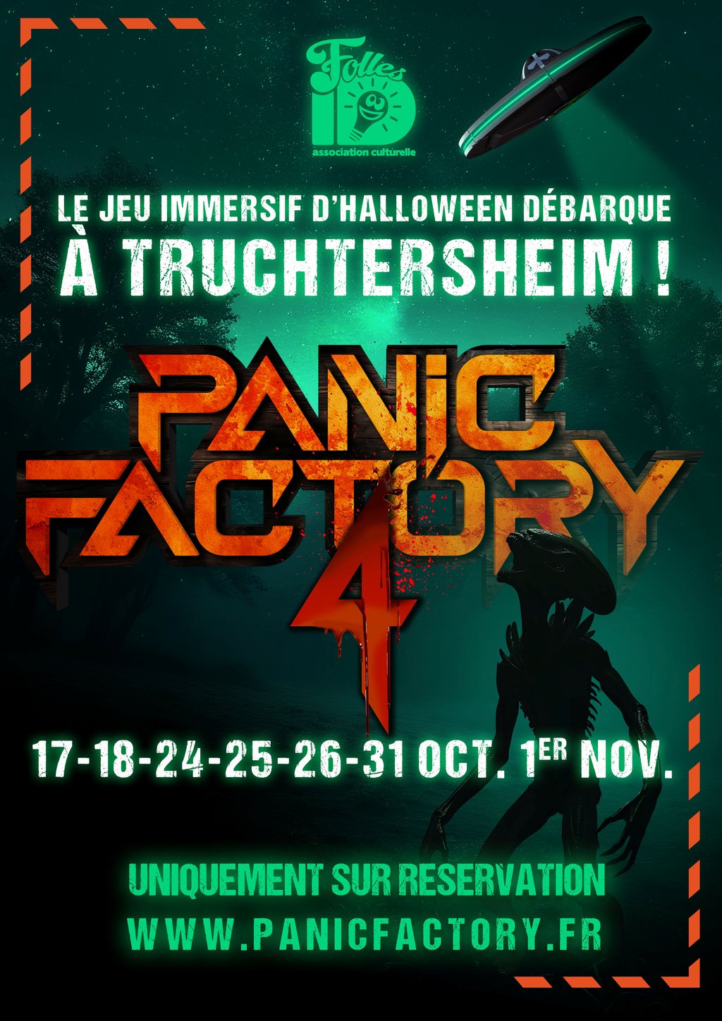 Le jeu immersif Panic Factory est de retour pour une 4ème édition ! Rendez-vous les week-ends du 17, 24 et 31 octobre à Truchtersheim. Ce jeu collaboratif se déroule sur un parcours de 12 zones thématiques pour une durée totale d’environ 1h.