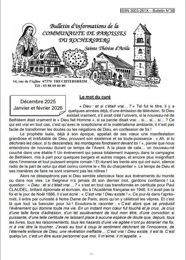 Téléchargez le Bulletin d'informations de la Communauté de paroisses du Kochersberg