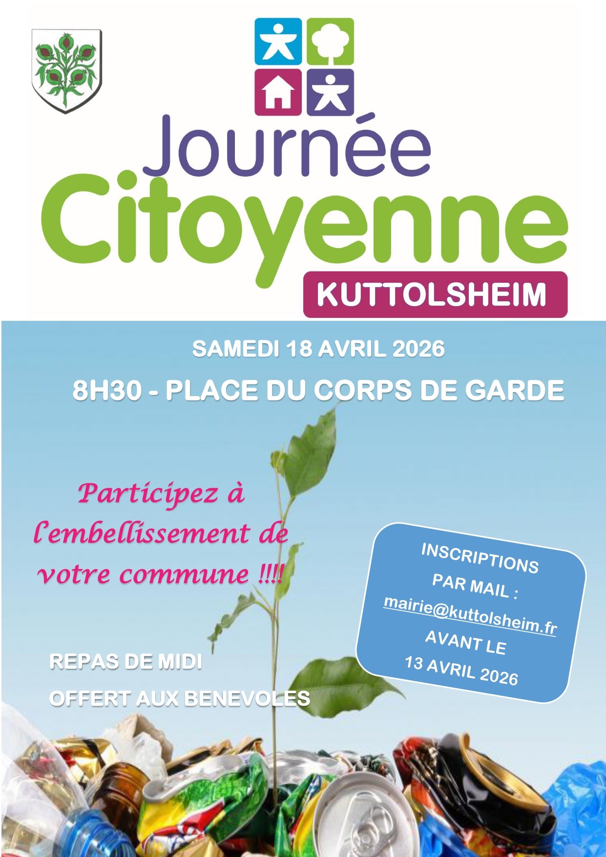 Inscriptions par mail : mairie@kuttolsheim.fr avant le 13 octobre (repas de midi offert aux bénévoles).