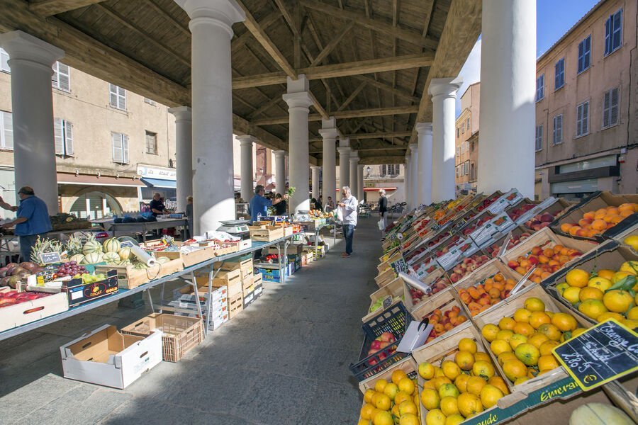 Sous le Marché Couvert de L'Ile-Rousse, retrouvez tous les jours son marché et ses exposants.