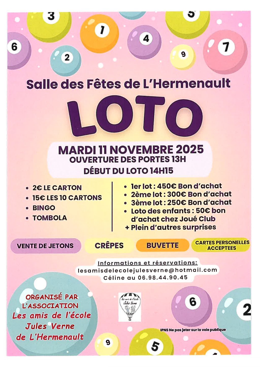 LOTO LES AMIS DE L'ÉCOLE JULES VERNE - MARDI 11 NOVEMBRE