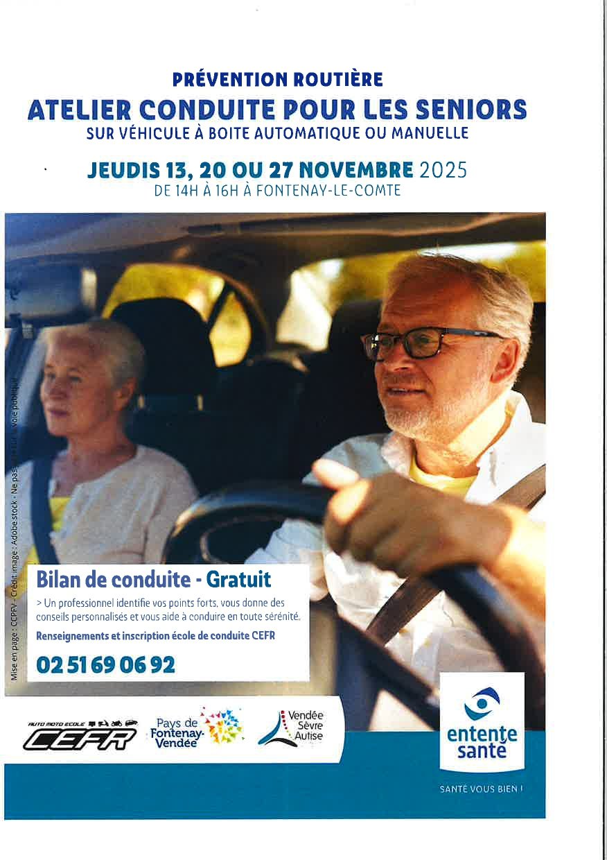 🚗 Atelier Conduite pour les Seniors – Prévention routière à Fontenay-le-Comte