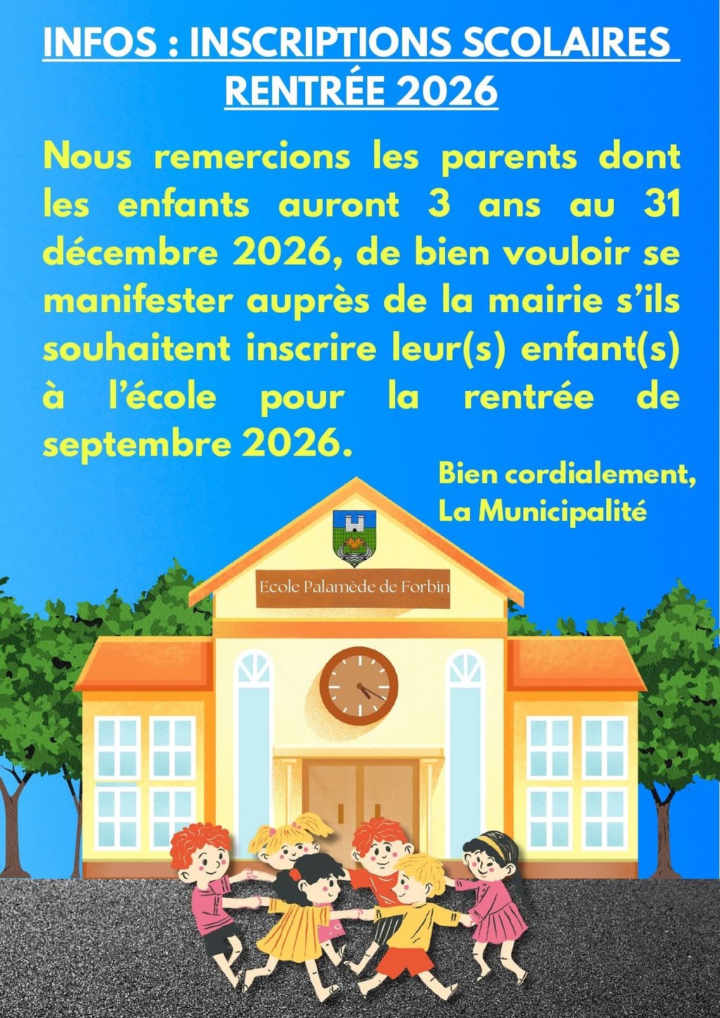 INSCRIPTIONS SCOLAIRES RENTRÉE 2026