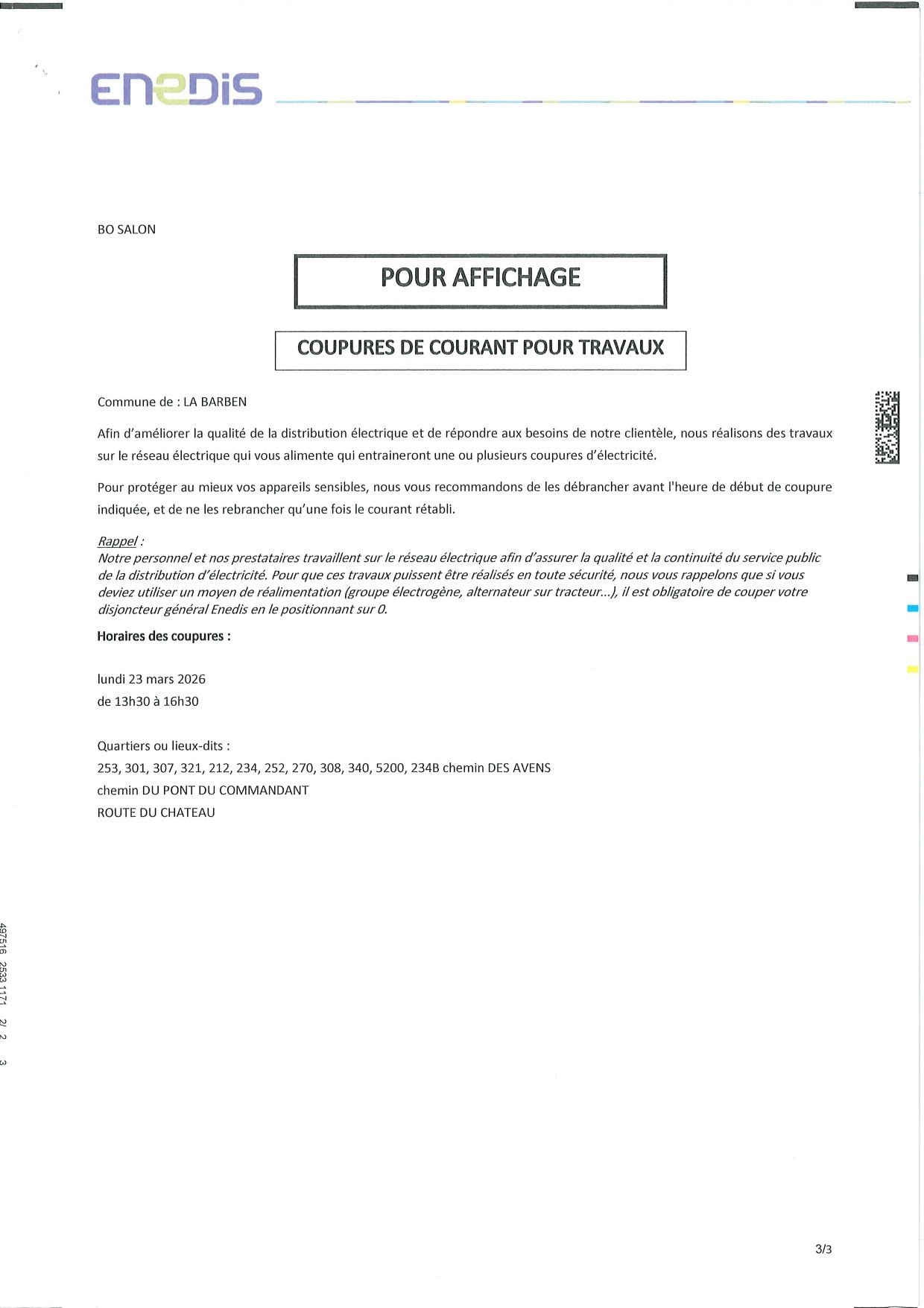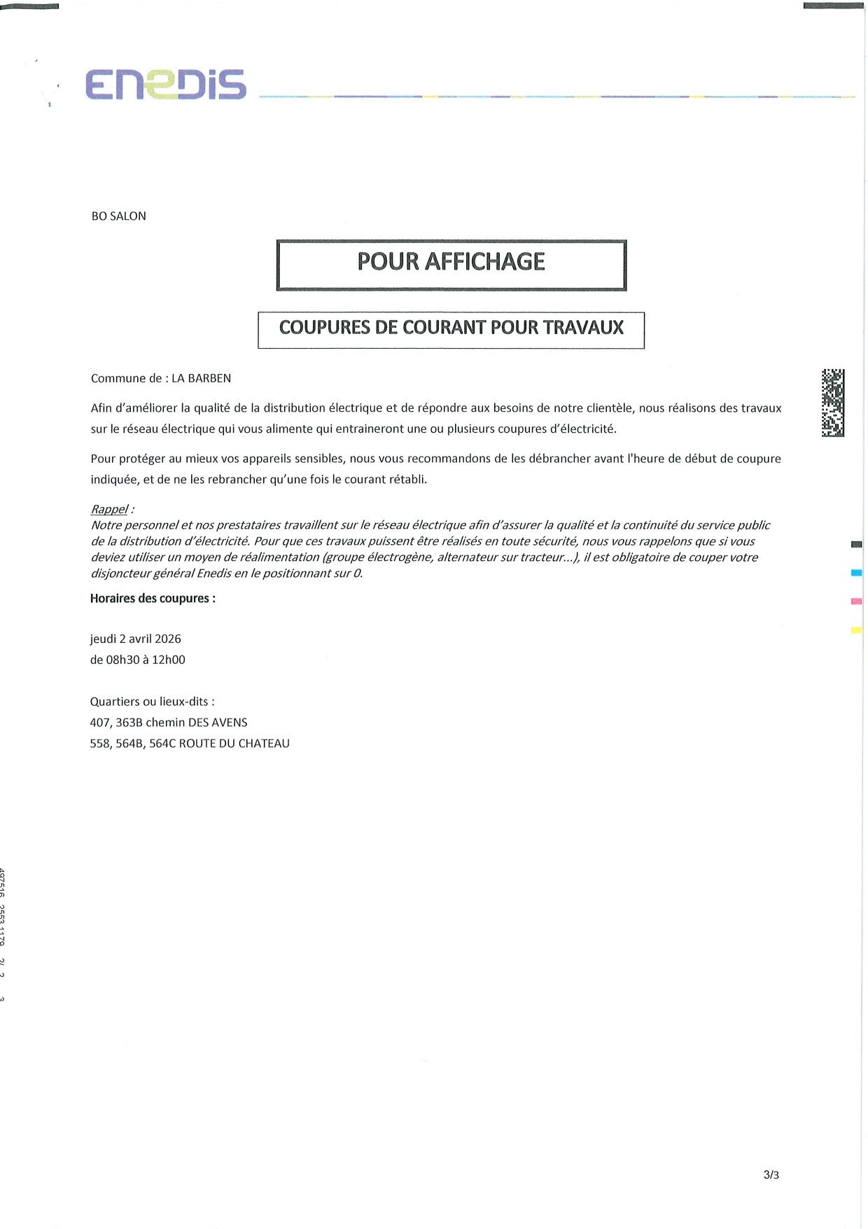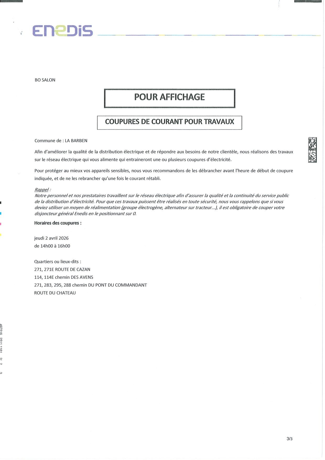 ENEDIS vous informe de coupures électriques dans les semaines à venir. Voir les documents ci-joint.