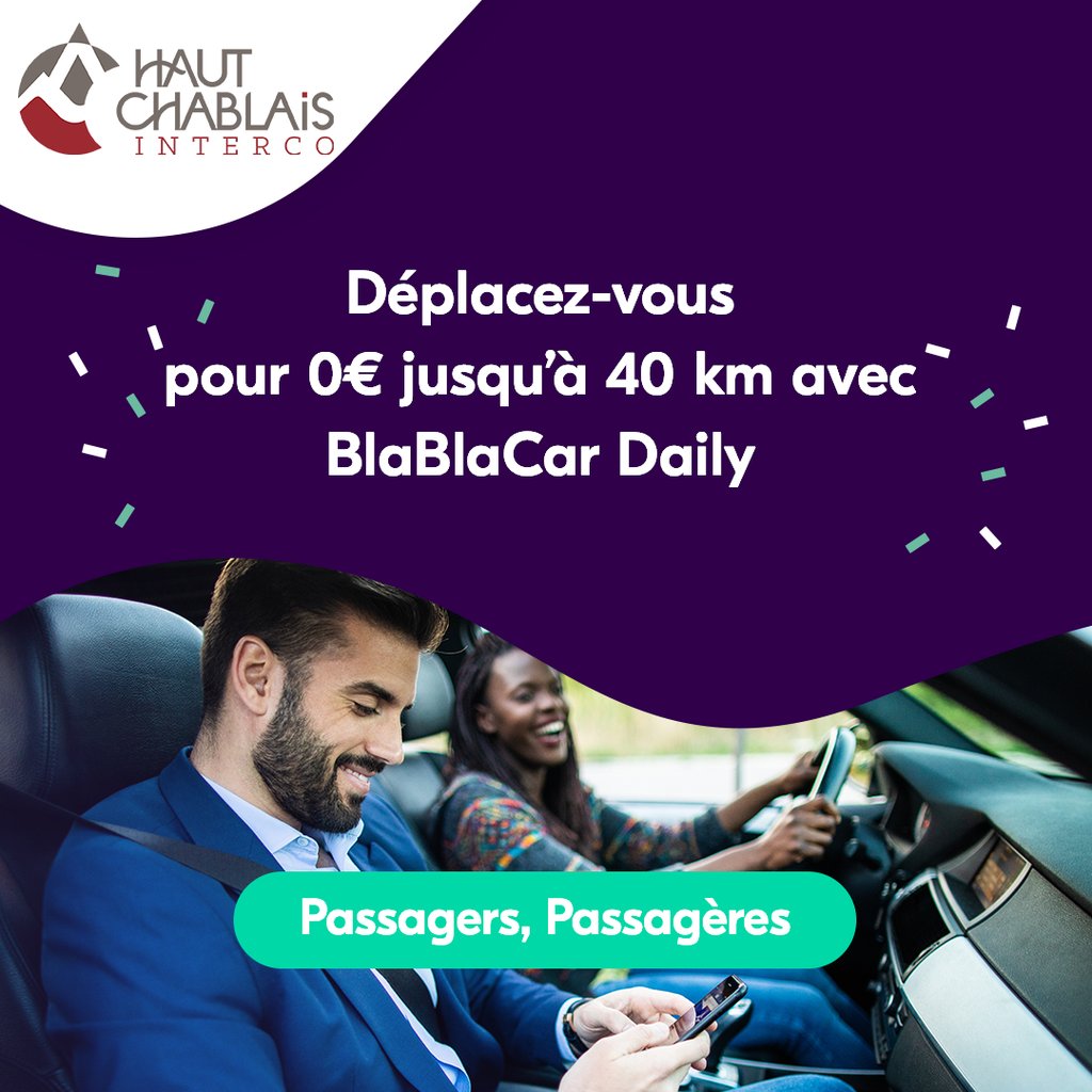 Que vous soyez conducteur ou passager, si votre trajet part ou arrive du territoire de la Communauté de communes du Haut-Chablais (ou les deux), lancez-vous dans le covoiturage en utilisant l'application mobile Blablacar Daily !