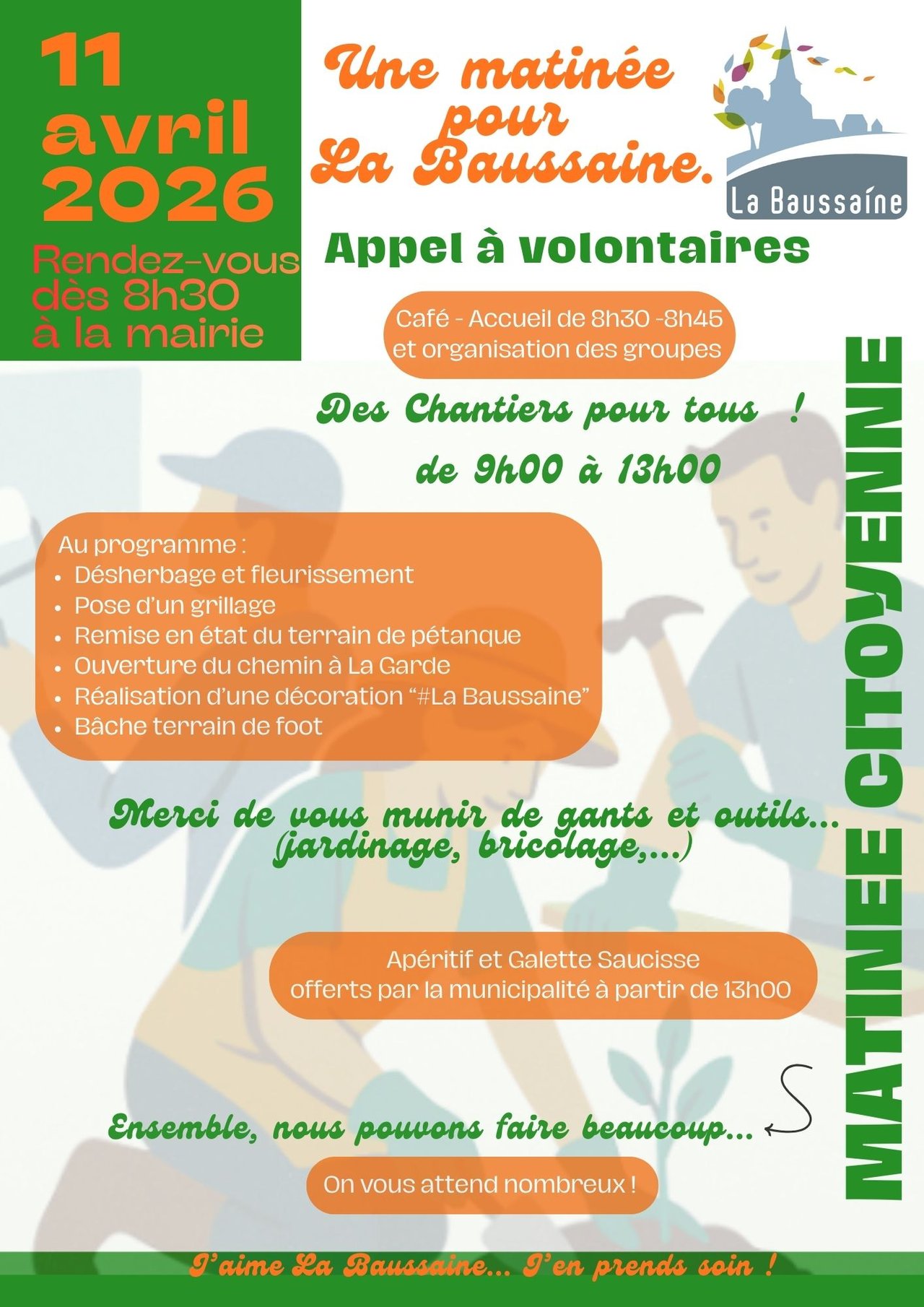 Venez vivre une matinée citoyenne avec nous à La Baussaine.