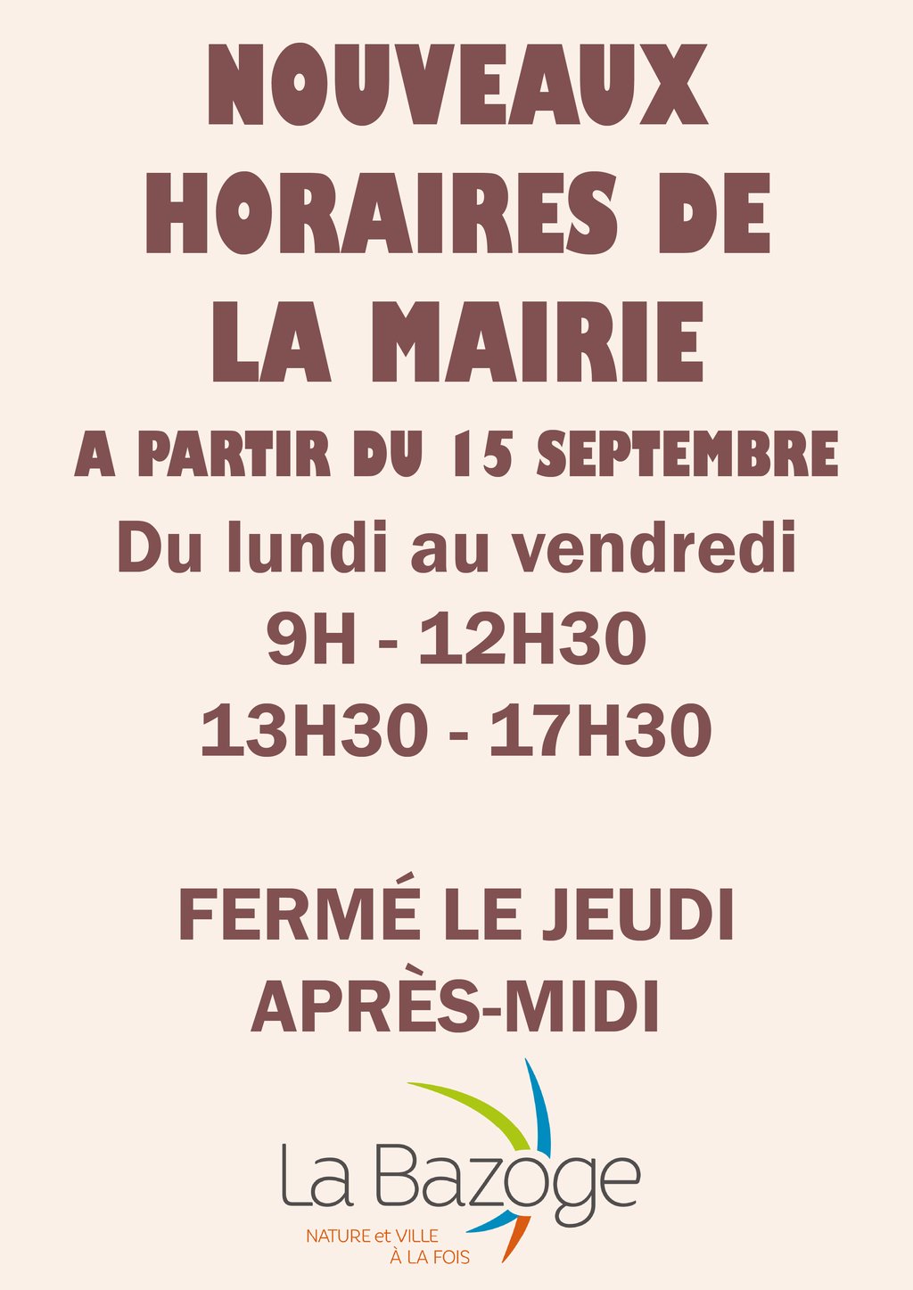 CHANGEMENT DES HORAIRES D'OUVERTURE DE LA MAIRIE - LA BAZOGE