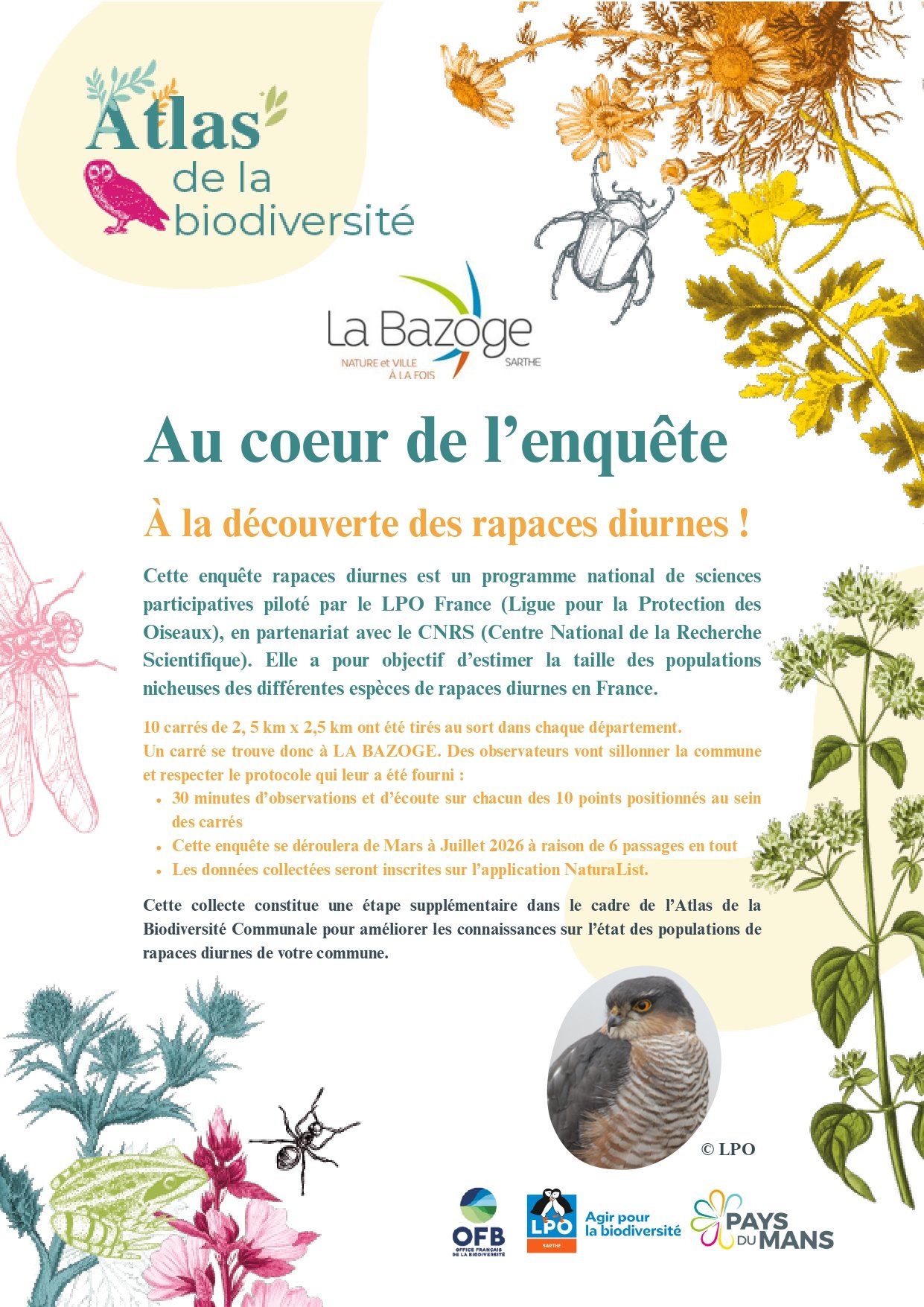 🦅 De mars à juillet 2026, une enquête va être réalisée sur les rapaces diurnes, dans le cadre de l'Atlas de la Biodiversité. 🦅