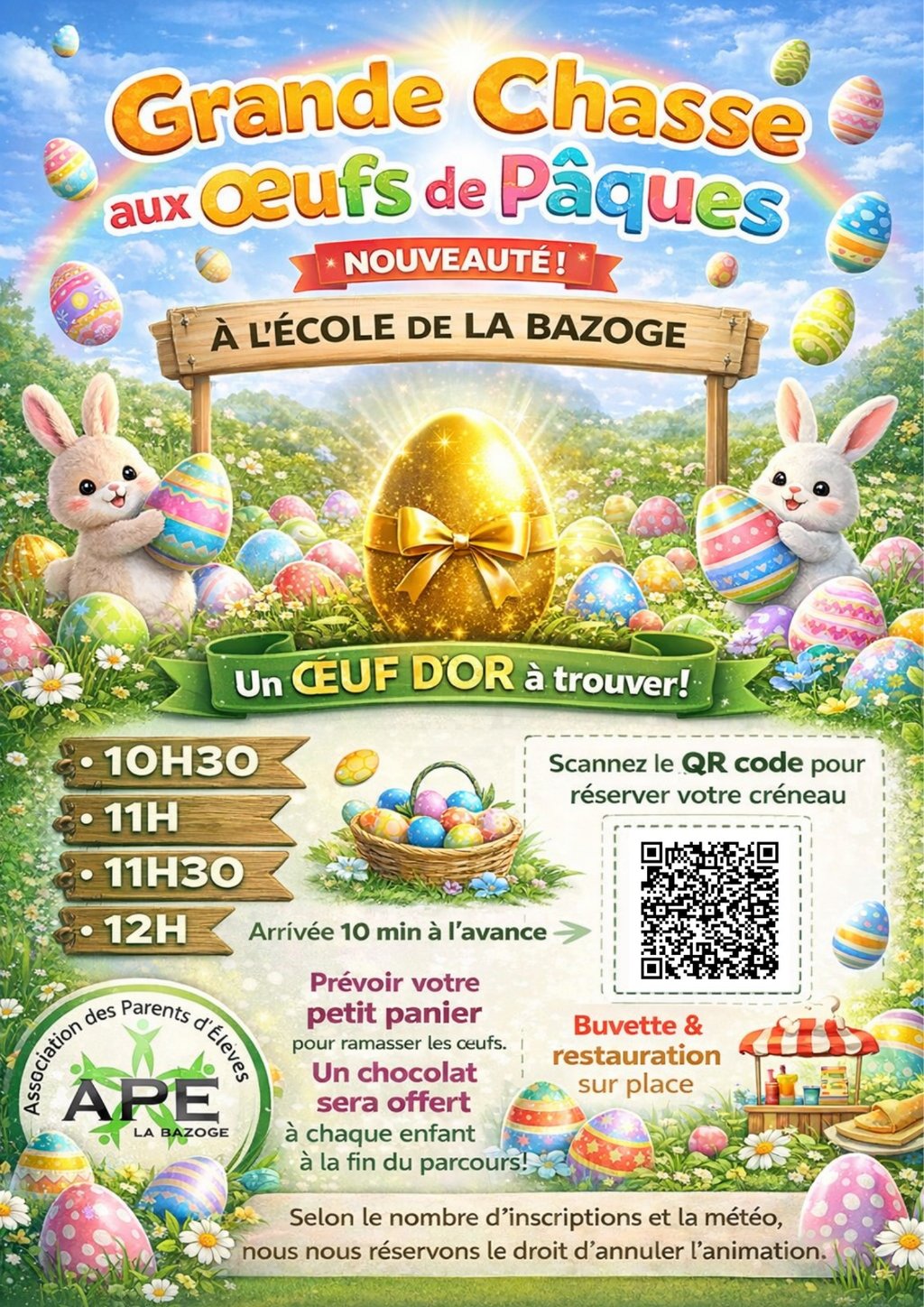 L’APE organise le dimanche 29 mars à l’école primaire Jean Monnet une chasse aux œufs.