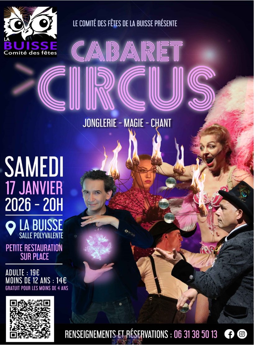 Le Comité des Fêtes vous présente Cabaret Circus, un spectacle mêlant jonglerie, magie, chant et numéros visuels incroyables. Un show familial, lumineux et plein d’énergie, pour bien commencer l’année 🎉