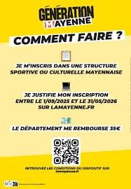 Vous êtes parent de collégien(s) ? Avec le dispositif "Génération Mayenne", le Département vous rembourse 35 € pour toute inscription dans une association sportive ou culturelle pour la saison 2025-2026 !