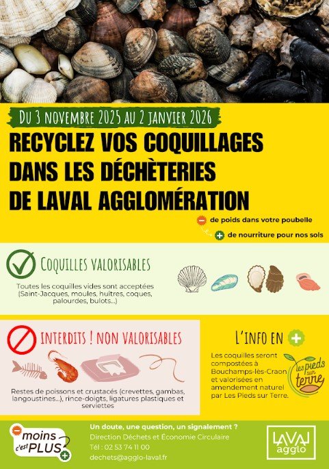 Laval AgglomĂ©ration relance cette annĂ©e lâopĂ©ration « Recyclez vos coquillages », du 3 novembre 2025 au 2 janvier 2026.
