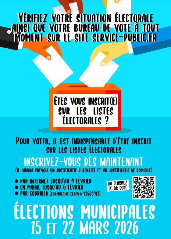 ELECTIONS MUNICIPALES LES 15 ET 22 MARS 2026 : POUR VOTER, IL EST OBLIGATOIRE D'ÊTRE INSCRIT SUR LES LISTES ÉLECTORALES