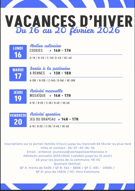VACANCES D'HIVER 2026 AU SERVICE PÉRISCOLAIRE DE LA CHAPELLE ANTHENAISE