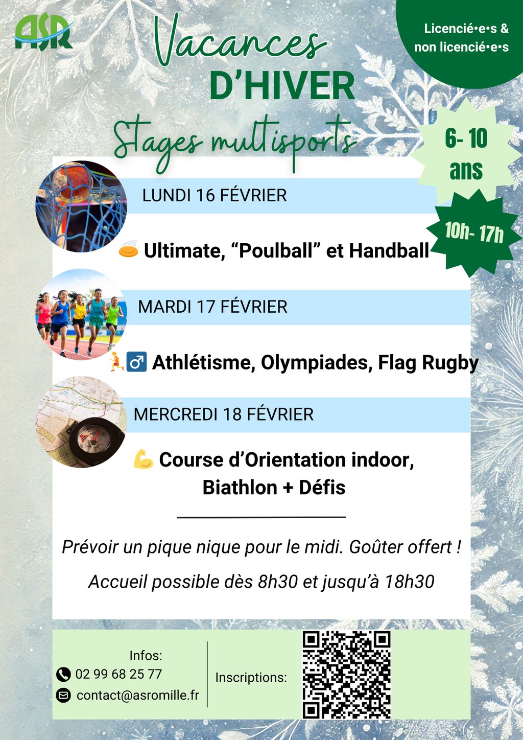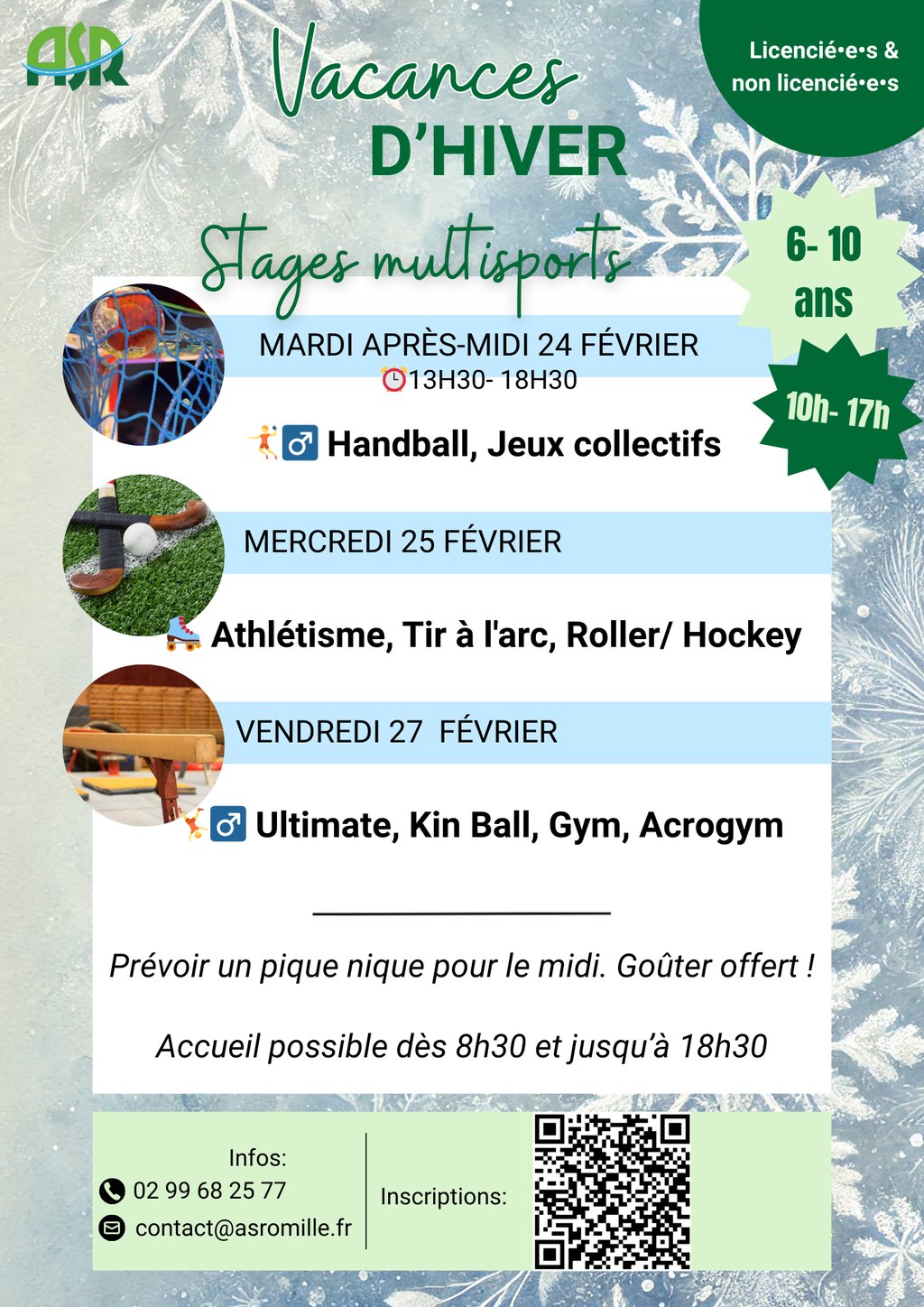 Dans le cadre des vacances d’hiver, l’ASR organise plusieurs stages et activités sportives à destination des jeunes, licenciés, ou non.