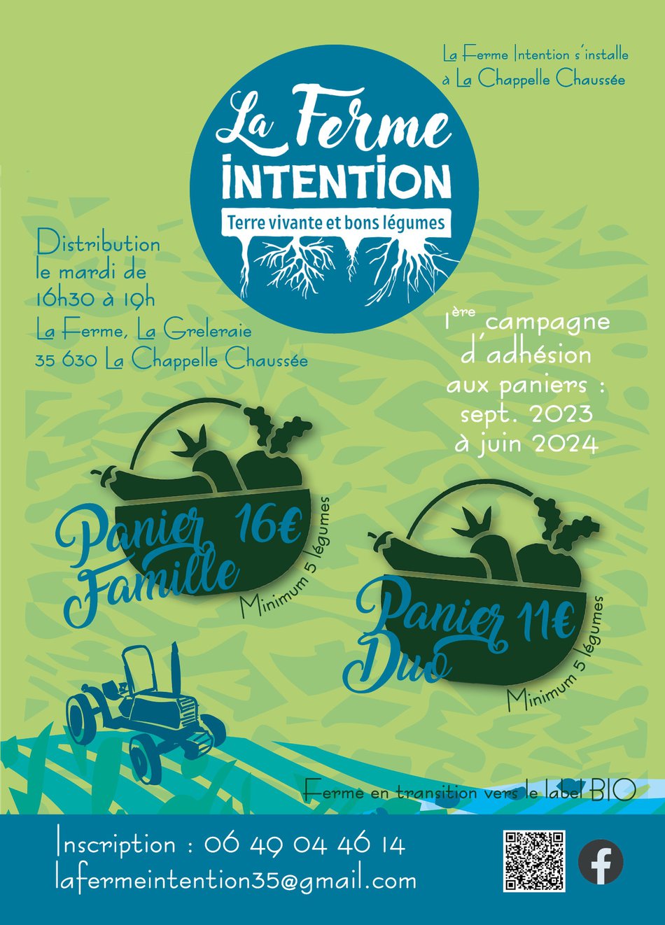 La Ferme Intention a vu le jour en mars 2023, sur la Chapelle Chaussée sur 2 ha 1/2. Vincent MENNY commence à produire des légumes diversifiés pour alimenter des paniers vendus sur abonnement de septembre à juin "mon but est de diversifier l'offre sur la commune en proposant des légumes de qualité, mais aussi abordables et 100% de saison". Panier duo à 11 € et un panier famille à 16€ par semaine distribués à partir de mi-septembre.