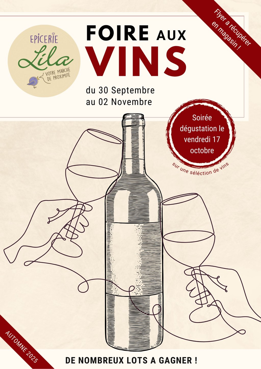 Foire aux vins dans votre épicerie Lila du 30 septembre au 2 novembre.