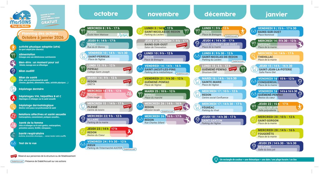 Planning des permanences du camion du MarSOINS pour la période d'Octobre 2025 à Janvier 2026