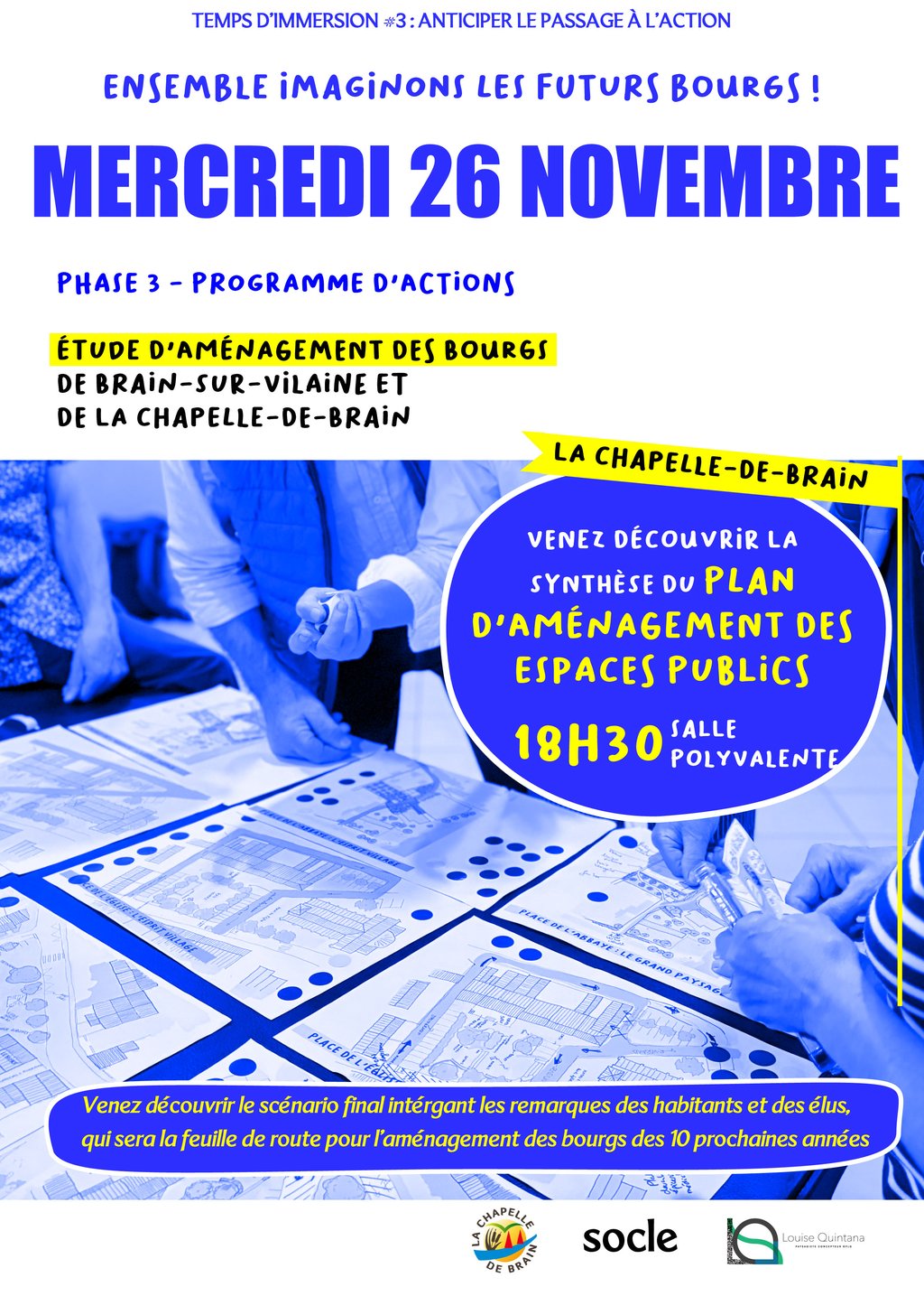 La réunion de synthèse de l'étude d'aménagement des bourgs aura lieu le mercredi 26 novembre à 18h30 à la salle Espace Loisirs.