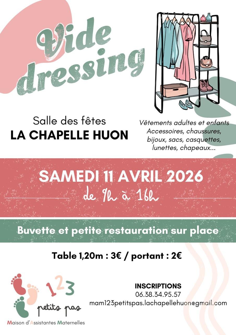 Vide dressing le samedi 11 avril 2026 de 9h à 16h à la salle des fêtes