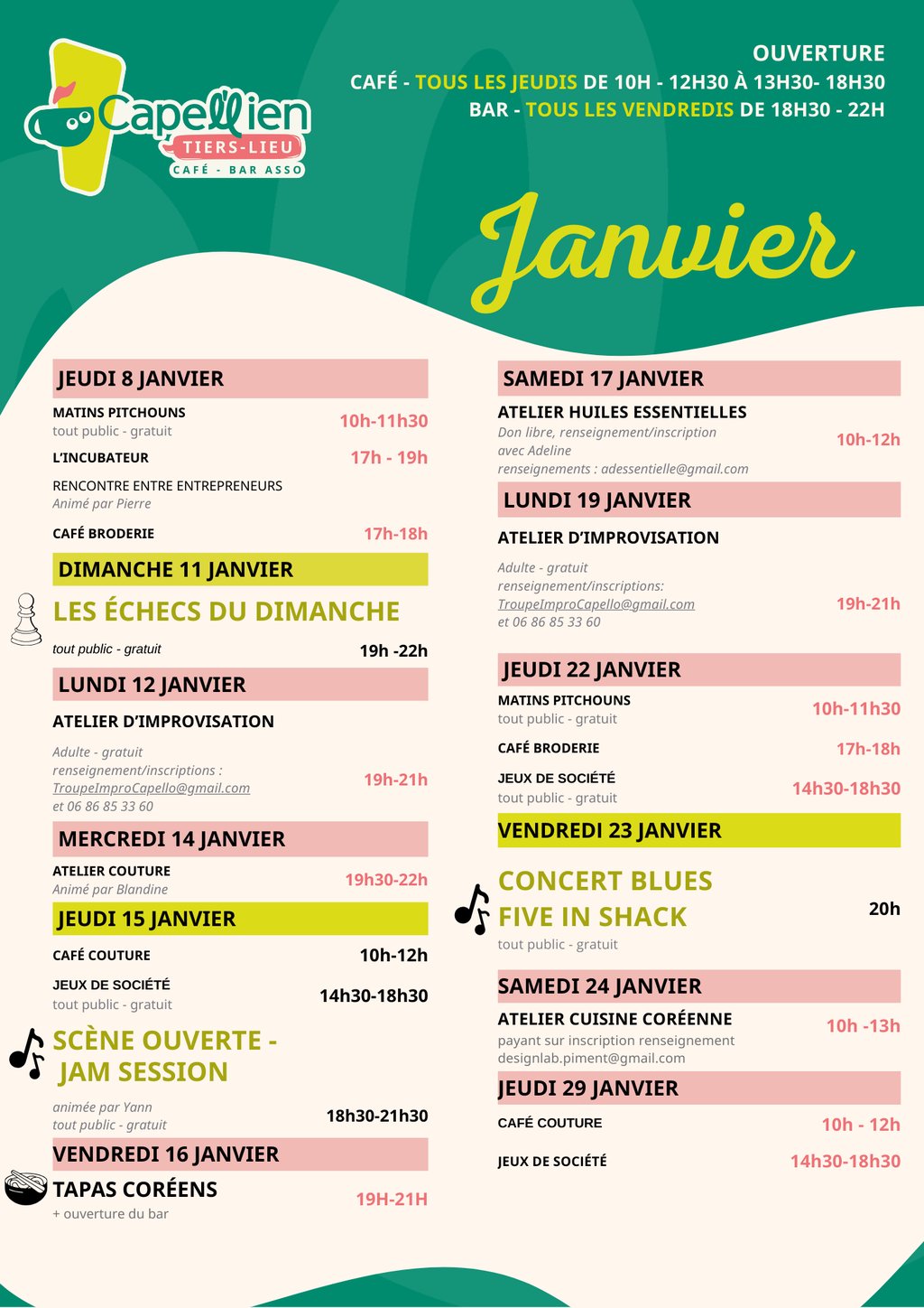 Le Capel’lien vous propose un mois de janvier riche en rencontres, ateliers, jeux et musique !