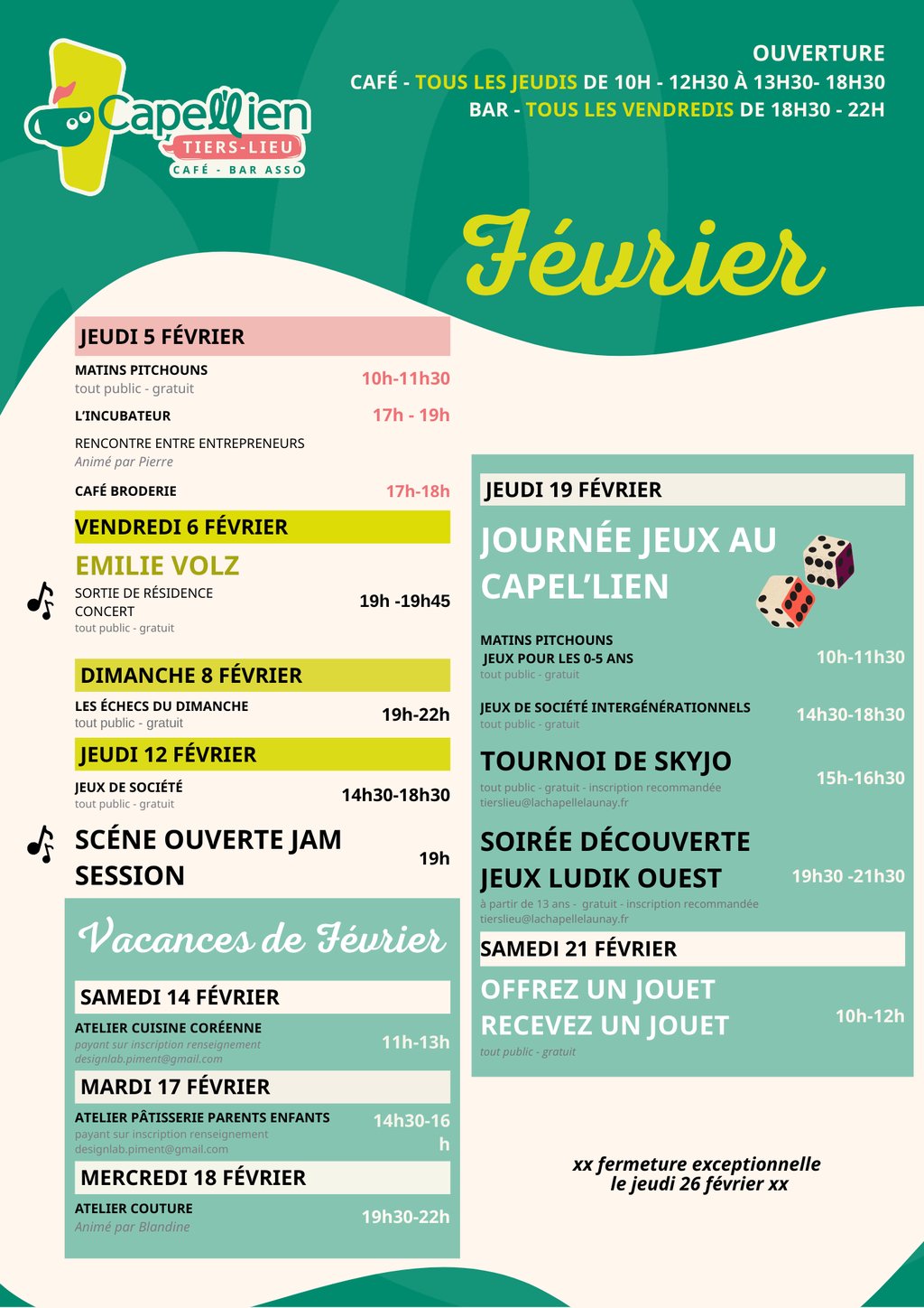 PROGRAMME DE FÉVRIER – CAPEL’LIEN