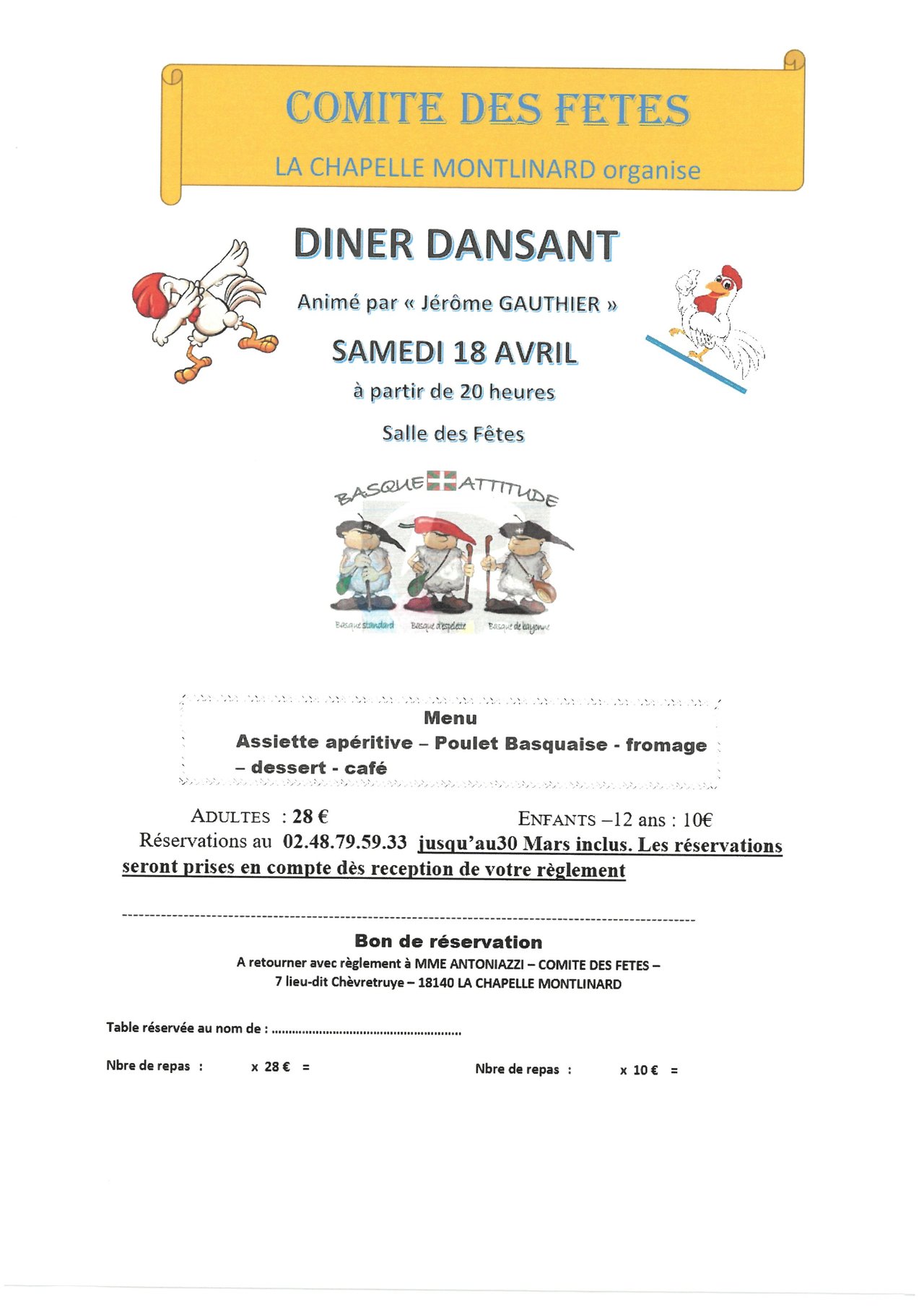 REPAS DANSANT SAMEDI 18 AVRIL 2026 SALLE DES FÊTES DE LA CHAPELLE MONTLINARD