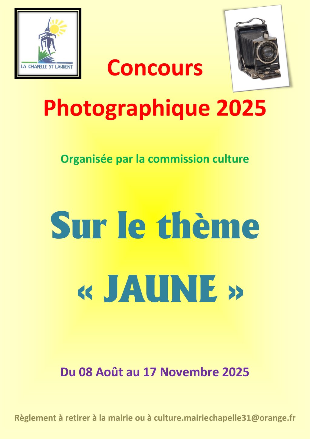 Règlement à retirer à la mairie ou à culture.mairiechapelle31@orange.fr