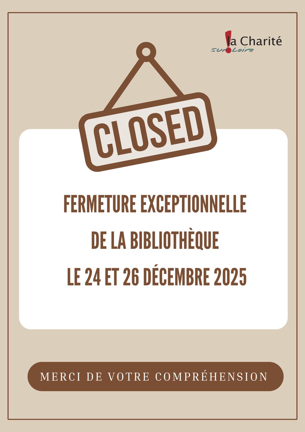 La bibliothèque sera exceptionnellement fermée le mercredi 24 et le vendredi 26 décembre 2025.