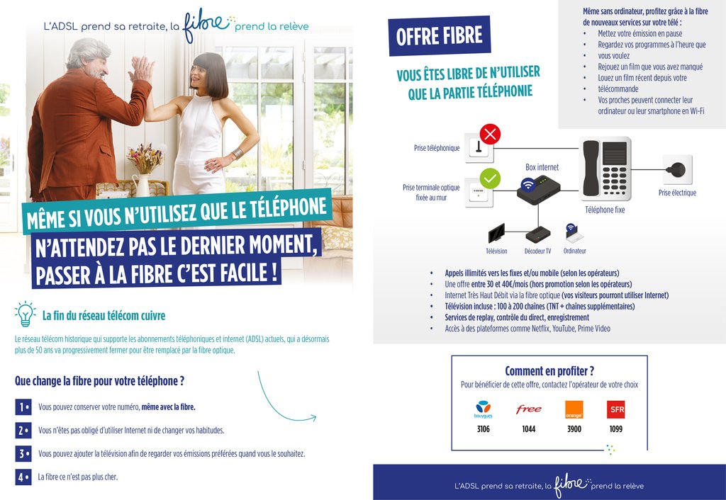 Le réseau télécom cuivre (ADSL) va disparaître progressivement pour être remplacé par la fibre optique.