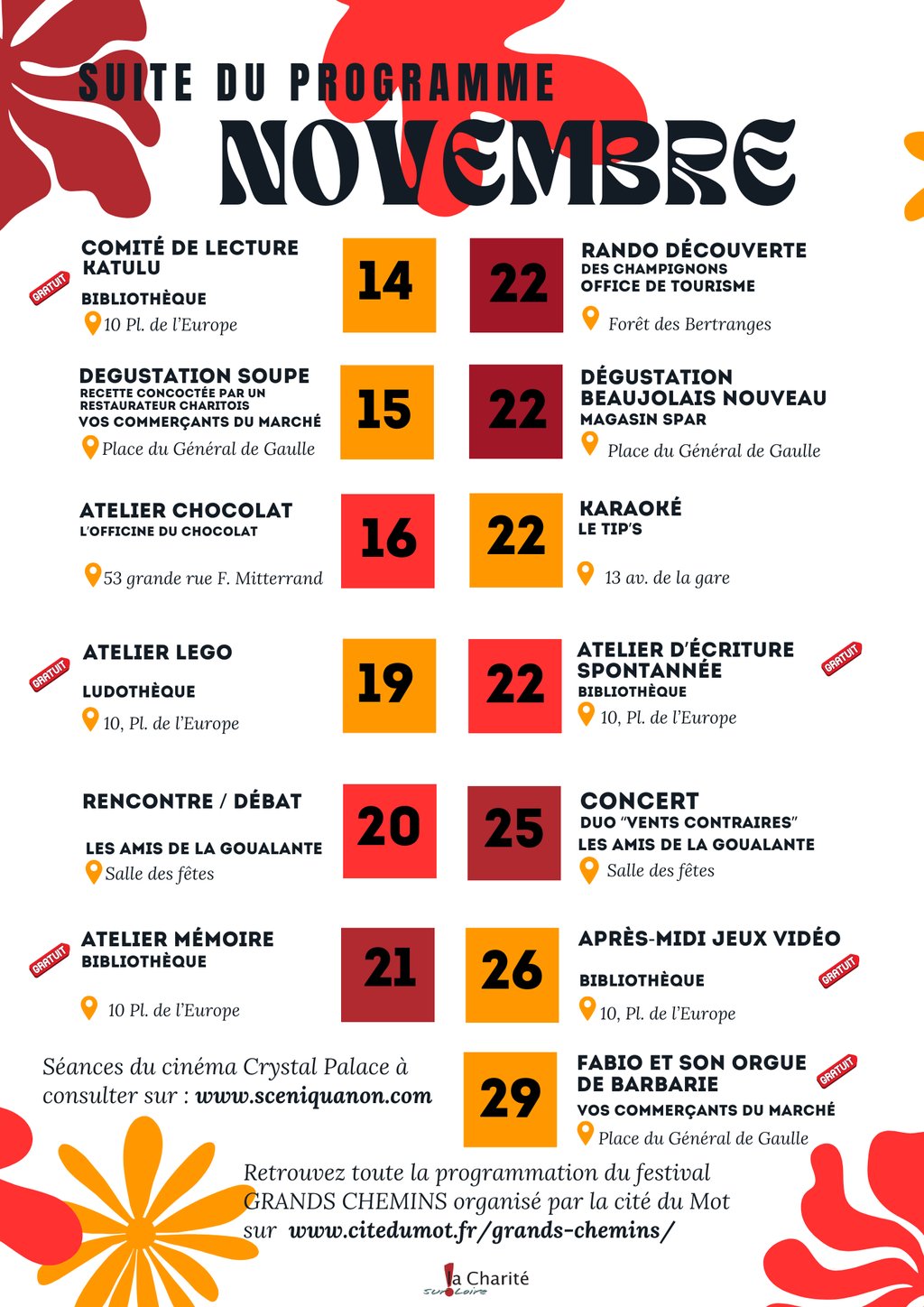 Découvrez le programme du mois de NOVEMBRE, riche en animations !